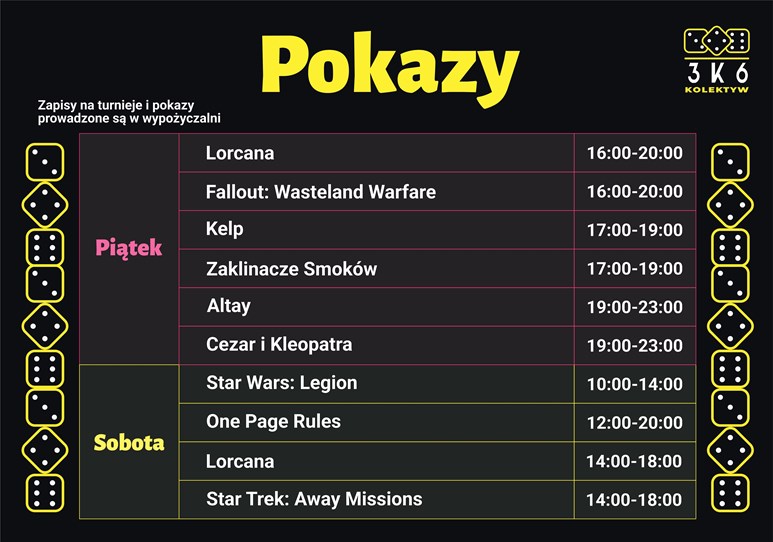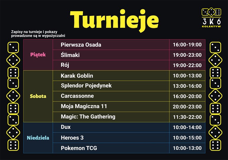 📝 Zapisy na turnieje i pokazy prowadzone są w wypożyczalni – Hala A.