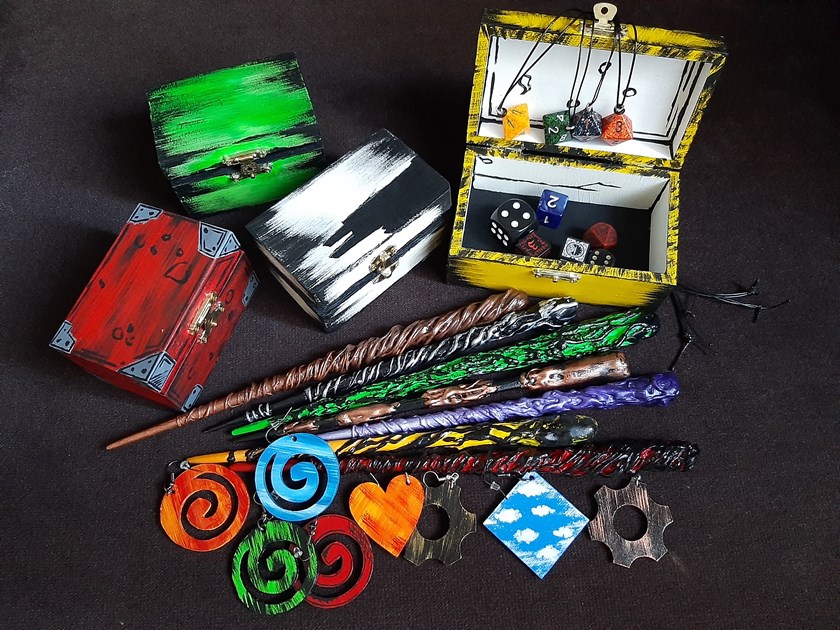 W swojej ofercie posiadamy m. in. syntetyczne różdżki magiczne, ekologiczne jaja smocze, różne kielichy, które znaleźliśmy w wielu tajemniczych lochach i kryptach (stan – prawie jak nie używane, przysięgamy) oraz pudełka na kości.