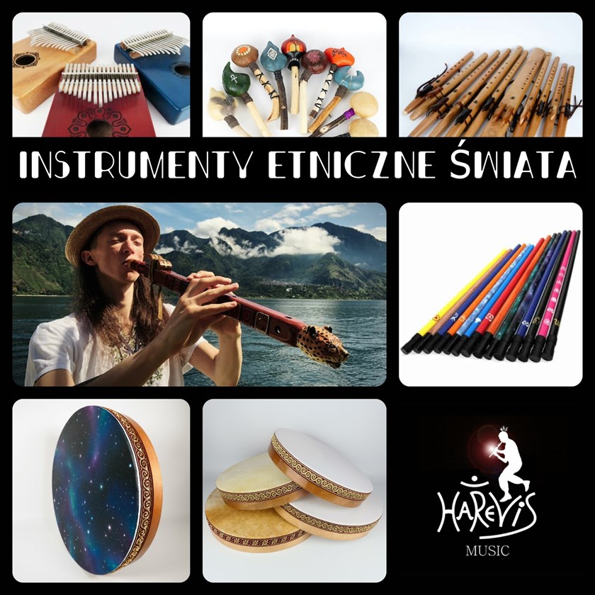 - Wyjątkowe etniczne instrumenty Harevis Music z całego świata: flety indiańskie, bębny, grzechotki, kalimby