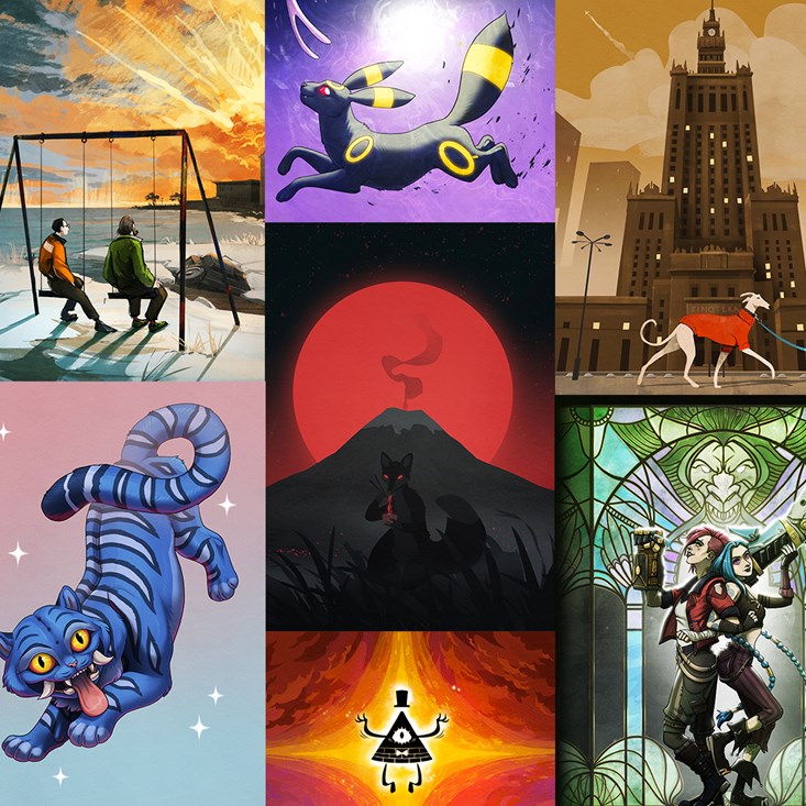✨ Mnóstwo ilustracji nawiązujących do dzieł popkultury, z autorskim twistem, w formie plakatów i pocztówek