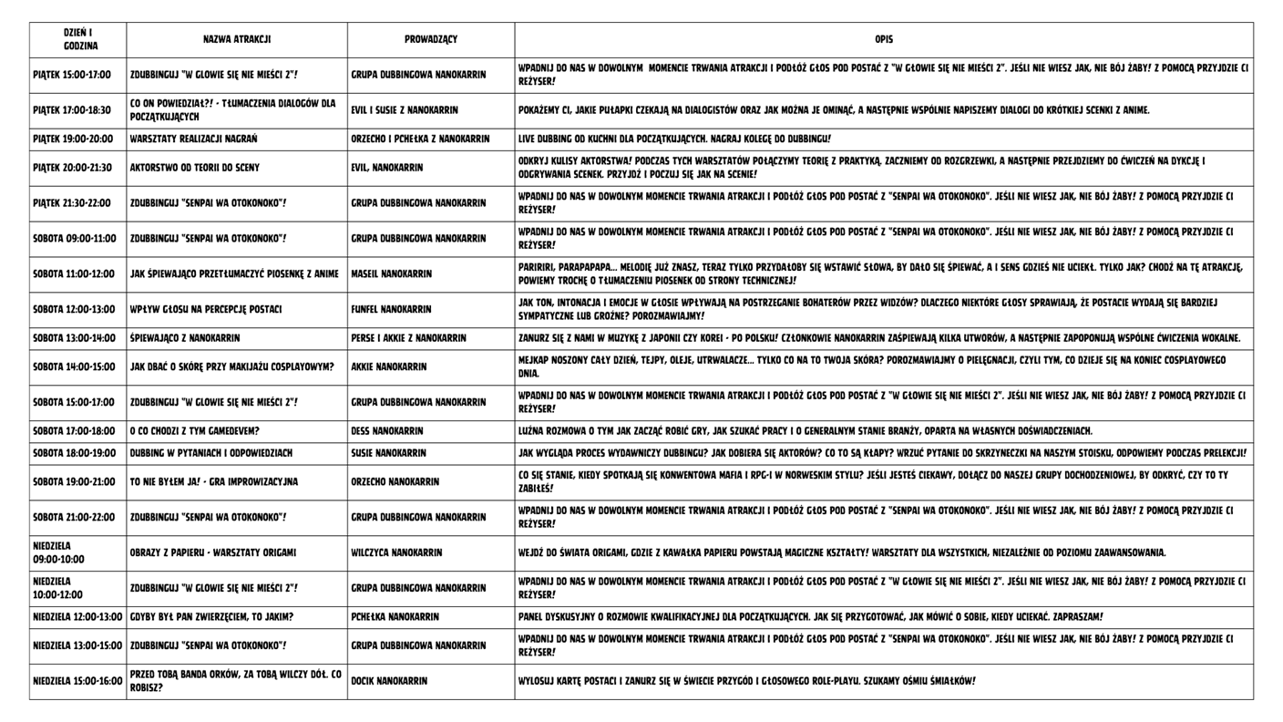 Na Starfeście ekipa NanoKarrin rozstawi swoje polowe studio nagraniowe, gdzie każdy uczestnik będzie mógł spróbować swoich sił w dubbingu, podkładając głos do krótkiej sceny! Oprócz tego, przygotowali dla Was panele, warsztaty i konkursy, podczas których odkryjecie tajniki dubbingu od kuchni. To jedyna okazja, by wejść do świata dubbingu i przeżyć niezapomnianą przygodę z NanoKarrin!